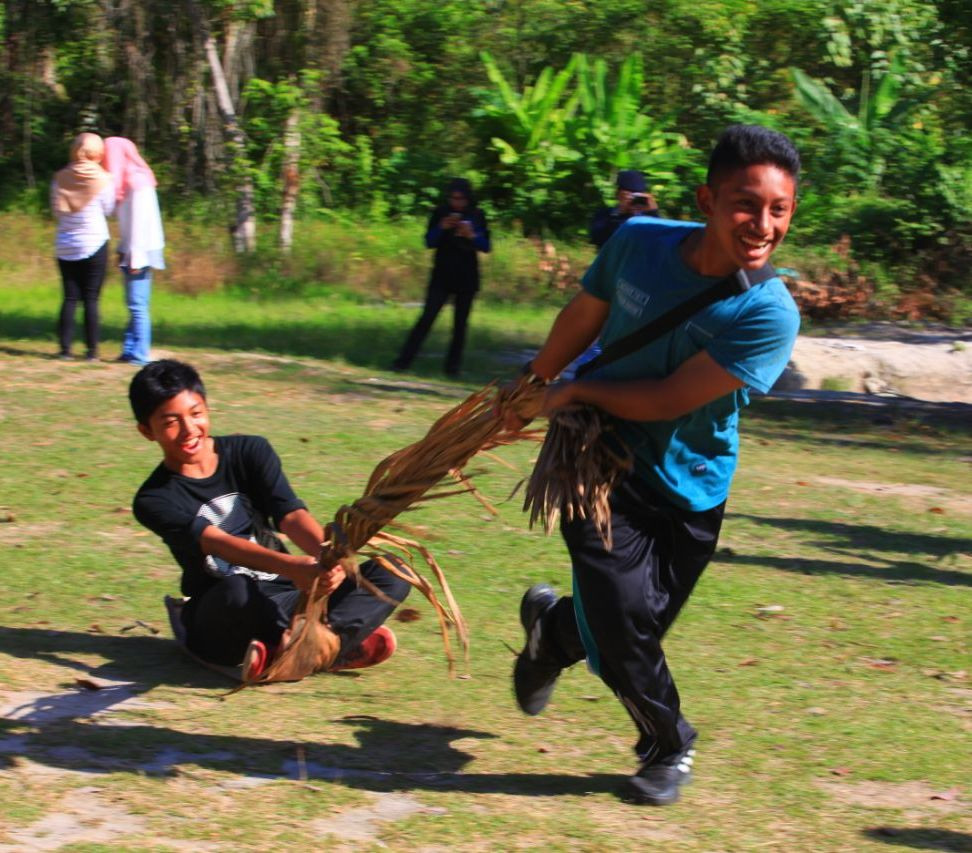 Traditional games which you can enjoy to the fullest such as tarik upih, coconut bowling, and kelereng.